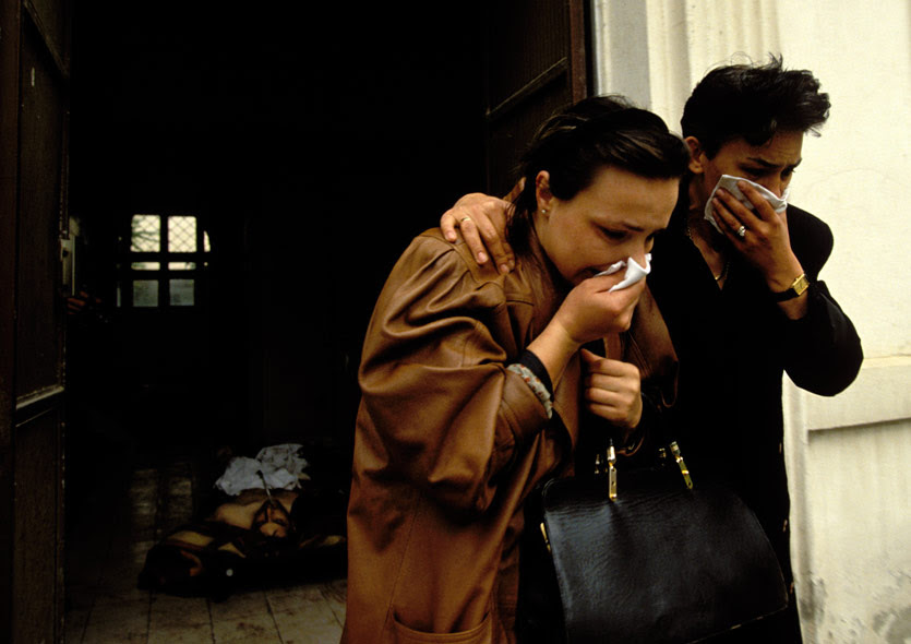 Click to view imageSeven-year-old Nermin Divovic lies mortally wounded in a pool of blood as unidentified American and British U.N. firefighters arrive to assist after he was shot in the head in Sarajevo Friday, November 18, 1994. The boy was shot and killed by a sniper firing from an apartment building into the Sarajevo city center, along Sarajevo's notorious Sniper Alley. The U.N. firefighters were at his side almost immediately, but the boy died outright. (AP Photo/Enric Marti) #