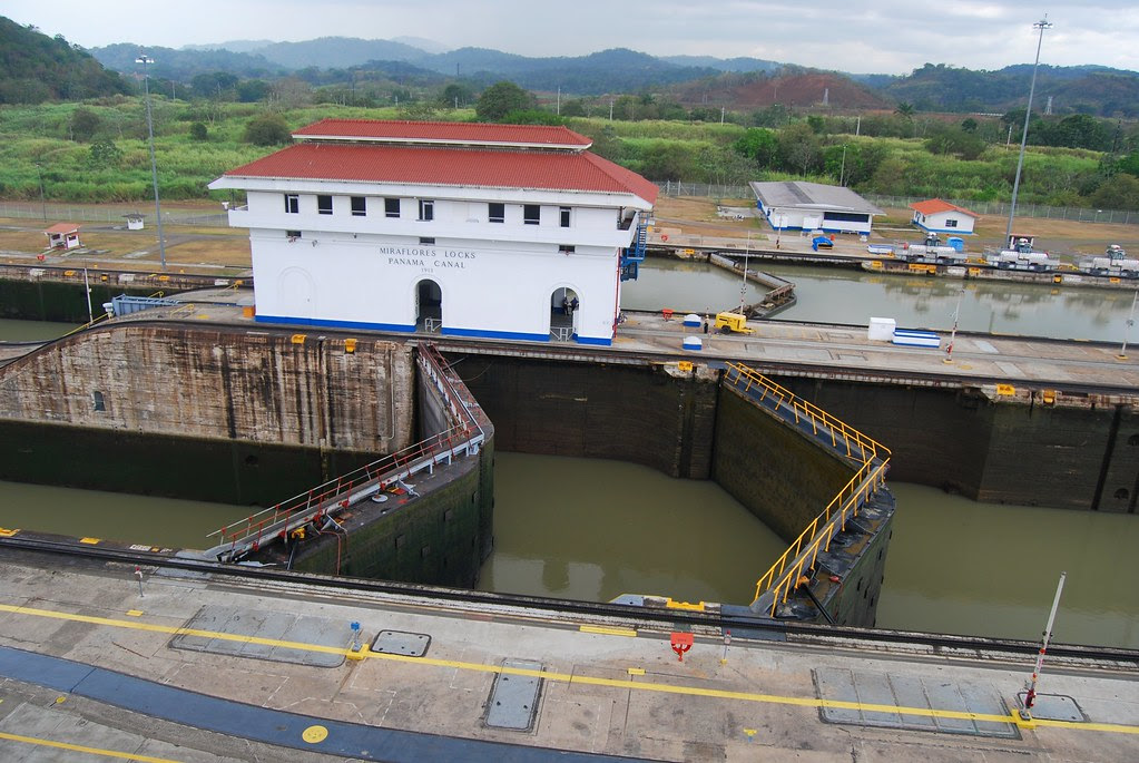 The smallest set of locks along the Panama Canal are at Pedro Miguel and have one flight which raise or lower ships 10 metres. The Miraflores locks have two flights with a combined lift or decent of 16.5 metres. Both the single flight of locks at Pedro Miguel and the twin flights at Miraflores are constructed and operated in a similar method as the Gatun locks, but with differing dimensions. The DamsMany engineering aspects of the Panama Canal point out the concern for the protection of the environment and natural resources. As the excavations were being carried out, an enormous amount of excess soil was produced. The French initially hauled the soil to an adjacent valley where the soil was dumped and allowed to build up. This itself caused many problems during the rainy season and was the cause behind many of the landslides. When the Americans started work on the canal, the engineers decided to reuse this soil for the building of the Gatun dam. This dam held back the water from the Chagres river and thus creating the Gatun lake. As time passed, the soil would continue to settle thus, increasing the strength of the dam. The dam itself is 1.5 miles in length and is nearly 0.5 mile wide at its base. The construction of the dam involved constructing 2 walls along its length using the excavated rock from the Culebra cut. The space between these 2 walls was then built up with impervious clay. This clay gradually dried and hardened into a solid mass almost equal to concrete in its water-resistant properties. This dam contains 16.9 million cubic metres of rock and clay, equivalent too about one tenth of the entire excavation of the canal. The dams at Pedro Miguel and Miraflores are small in comparison to Gatun. Their foundations are on solid rock and are subjected to a head of water of 12 metres, whereas the Gatun dam is subjected to a 24 metre head. The dam at Pedro Miguel is an earth dam approximately 300 metres in length with a concrete core wall. At Miraflores there are two dams forming a small lake with an area of about 2 square miles. One of the dams is constructed of earth and is 210 metres in length. The second of the dams at Miraflores is 150 metres in length and is made from concrete. The FutureThe ships for which the canal was designed are now long gone. Modern shipping has increased the size of ships. The increase in the tonnage in which can be carried has thus caused problems for the canal. The canal can only accommodate ships carrying up to 65,000 tons of cargo, but recently ships which are able to carry 300,000 tons have been introduced. The problem of the ever-increasing size in ships has caused discussion into the construction of a new canal joining the Pacific and Atlantic oceans. There have been discussions on three alternative routes for a new canal, through; Columbia, Mexico and Nicaragua. The Columbian and Mexican routes would allow for the construction of a sea level canal, whereas the Nicaraguan route would require a lock system. If a replacement canal were to be constructed, the economic effect on the Republic of Panama would be a great concern as the present canal employs 14,000 people, of which 4,000 are Panamanians. It has been suggested that, if a new canal were to be built, the existing canal could be converted to a hydroelectric power station at a relatively small cost. As Panama has no iron-ore deposits and lacks oil, natural gas resources or skilled labour, there is no real need for a new source of cheap power. The capacity of the existing canal could be increased by converting it to a sea level passage. This would be carried out by the dredging of more than 765 million cubic metres of earth and rock which could be carried out without interfering with existing canal traffic. Water retaining structures would be constructed to maintain the canal levels during excavation. When excavation had been completed, the water retaining structure would be demolished by blasting them into deep pits. The lowering of the canals level would take place over a seven day period and would be the only time traffic would be disrupted. It was suggested during the 1960's that the canal could be increased in size by the use of nuclear explosives and would cost less than one third, and take about half the time than using conventional excavation methods. It is now obvious that this would cause a great deal of concern for all anti-nuclear groups. The Panama Canals administration will be under the control of Panama in 1999. ConclusionWhat makes the Panama Canal remarkable is its self sufficiency. The dam at Gatun, is able to generate the electricity to run all the motors which operate the canal as well as the locomotives in charge of towing the ships through the canal. No force is required to adjust the water level between the locks except gravity. As the lock operates, the water simply flows into the locks from the lakes or flows out to the sea level channels. The canal also relies on the overabundant rainfall of the area to compensate for the loss of the 52 million gallons of fresh water consumed during each crossing. Despite the limit in ship size, the canal is still one of the most highly travelled waterways in the world, handling over 12,000 ships per year. The 51-mile crossing takes about nine hours to complete, an immense time saving when compared with rounding the tip of South America. Until the early 1970's the Panama Canal Company made considerable profits. After a period of nearly 60 years the loss in profit required the increase of tolls 3 times in 4 years. Much of the equipment, some of which dates back too 1914, now requires expensive modifications, simply to continue moving its present rate of traffic. |