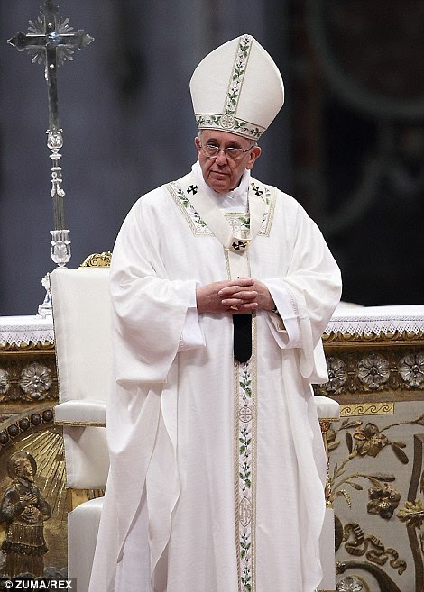 +41 The Argentine pontiff was pictured during the traditional Chrism Mass in St. Peter's Basilica in the Vatican this morning