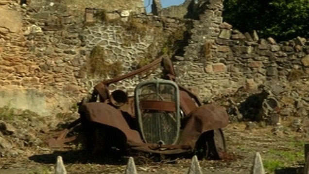 +11 People hide behind a tanks in the streets of Paris, as in the modern day street shoppers go about their daily business